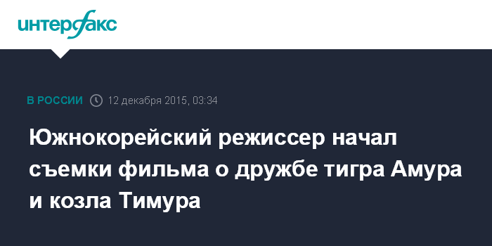Южнокорейский режиссер начал съемки фильма о дружбе тигра Амура и козла Тимура