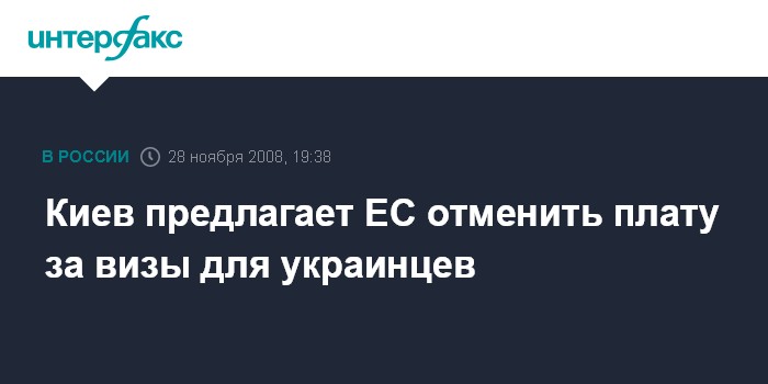 Москва. 28 ноября. INTERFAX.RU - Киев предлагает Европейскому Союзу рассмотреть вопрос об отмене оплаты за визы для украинцев, которые направляются в страны-члены ЕС, сообщил заместитель министра иностранных дел Украины Константин Елисеев.