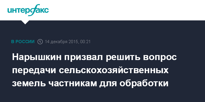 Нарышкин призвал решить вопрос передачи сельскохозяйственных земель частникам для обработки
