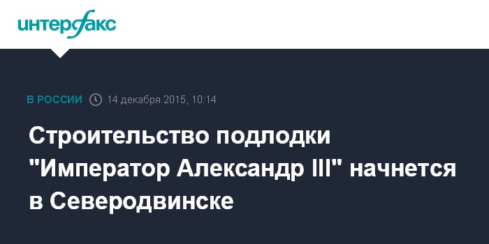 "Торжественная церемония закладки новейшей подводной лодки проекта "Борей-А" "Император Александр III" состоится на ОАО "Севмаш" (входит в состав Объединенной судостроительной корпорации - ИФ) в Северодвинске 18 декабря", - уточнил Дыгало.