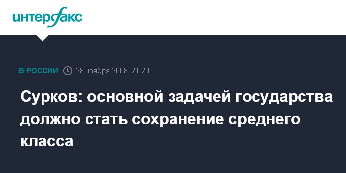 Сурков: oсновной задачей государства должно стать сохранение среднего класса