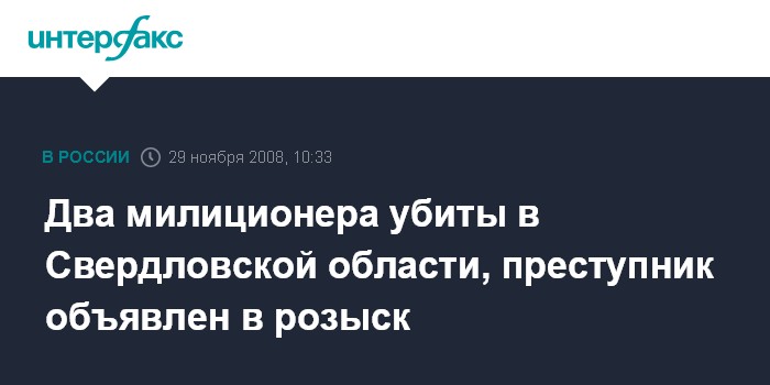 Москва. 29 ноября. INTERFAX.RU - В поселке Билимбай Первоуральского района Свердловской области около 22:00 часов пятницы у частного дома по улице Свердлова обнаружены тела двух милиционеров с огнестрельными ранениями.