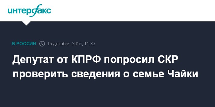 Депутат от КПРФ попросил СКР проверить сведения о семье Чайки