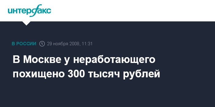 Москва. 29 ноября. INTERFAX.RU - В Юго-Западном округе Москве трое неизвестных похитили у неработающего дипломат с 300 тысячами рублей, сообщил "Интерфаксу" источник в правоохранительных органах в субботу.