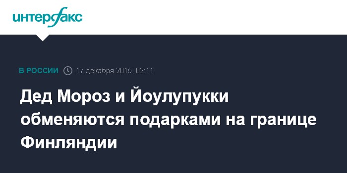 Москва. 17 декабря. INTERFAX.RU - Российский Дед Мороз и финский Йоулупукки проведут традиционную ежегодную встречу в четверг на границе в пункте пропуска "Брусничное" (Выборгский район Ленинградской области), сообщила пресс-служба регионального правительства.