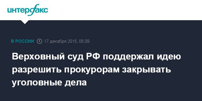 Верховный суд РФ поддержал идею разрешить прокурорам закрывать уголовные дела