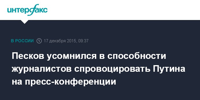 Песков усомнился в способности журналистов спровоцировать Путина на пресс-конференции