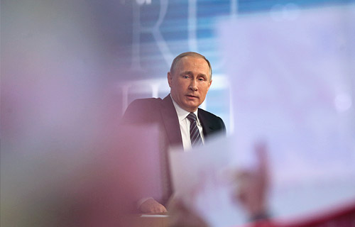Президент России Владимир Путин в одиннадцатый раз отвечает на вопросы российских и иностранных журналистов в рамках ежегодной пресс-конференции