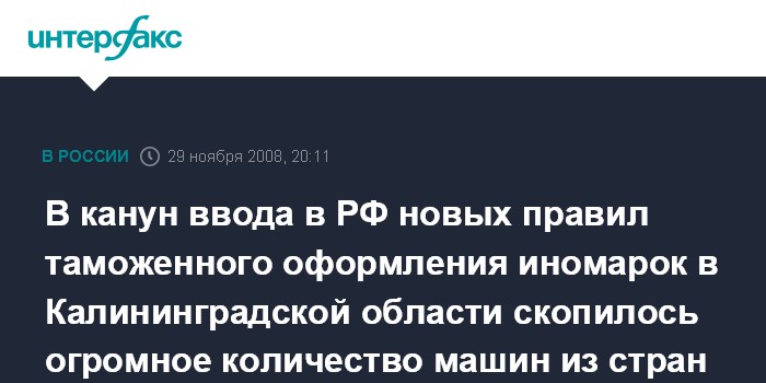 Как сообщил "Интерфаксу" в субботу оперативный дежурный Калининградского областного таможенного управления, "в настоящее время на польской стороне на международном пункте пропуска "Мамоново-Бранево" образовалась огромная очередь из иномарок, которые калининградские перегонщики намерены ввести в страну для перепродажи".