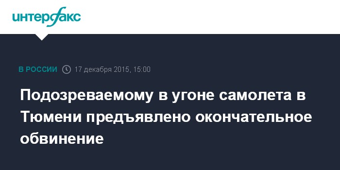 В свою очередь пресс-служба Уральского следственного управления на транспорте сообщает, что обвинение предъявлено двум фигурантам дела по п."а" часть 2 статья 211 УК РФ (угон воздушного судна, совершенный группой лиц по предварительному сговору).