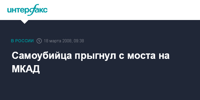 Как сообщил "Интерфаксу" источник в правоохранительных органах, самоубийца прыгнул с моста в районе пересечения МКАД и улицы Молдагуловой. Он скончался на месте.