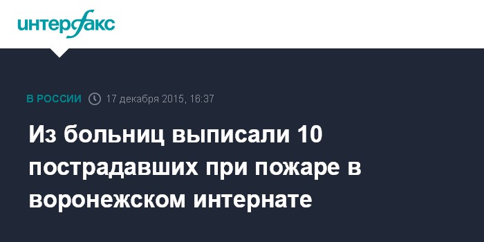 Из больниц выписали 10 пострадавших при пожаре в воронежском интернате