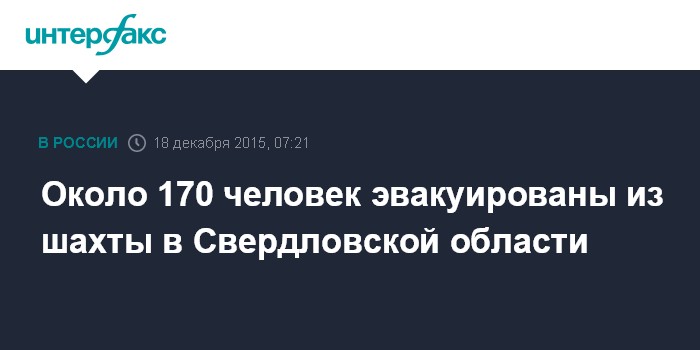 Около 170 человек эвакуированы из шахты в Свердловской области