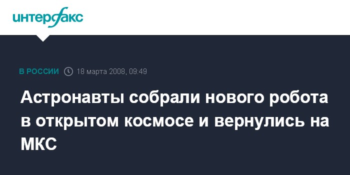 Королев (Московская область). 18 марта. INTERFAX.RU - Астронавты NASA Ричард Линнехан и Роберт Бенкен завершили работы в открытом космосе и вернулись на Международную космическую станцию, сообщили "Интерфаксу-АВН" в российском Центре управления полетами.