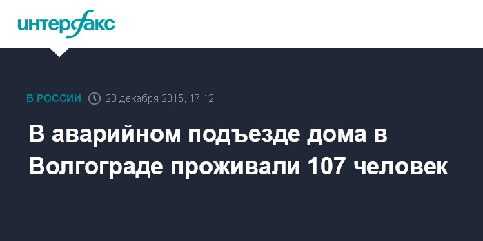 Москва. 20 декабря. INTERFAX.RU - 242 человека зарегистрированы в доме в Волгограде, где произошел взрыв газа.