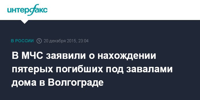 Москва. 20 декабря. INTERFAX.RU - Один погибший обнаружен и извлечен из под завалов частично разрушенного в результате взрыва газа девятиэтажного жилого дома в Волгограде, сообщил на месте журналистам заместитель министра МЧС Леонид Беляев.