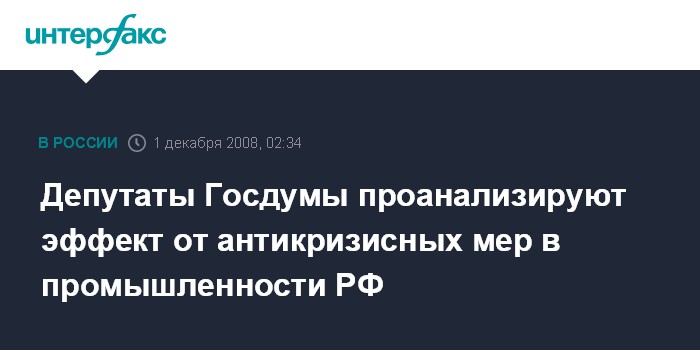 Депутаты Госдумы проанализируют эффект от антикризисных мер в промышленности РФ