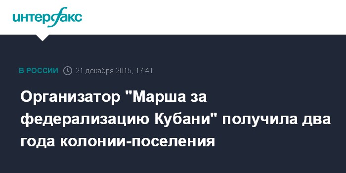 Москва. 21 декабря. INTERFAX.RU - Октябрьский районный суд Краснодара признал активистку Дарью Полюдову, пытавшуюся организовать региональный "Марш за федерализацию Кубани", виновной в призывах к сепаратизму.