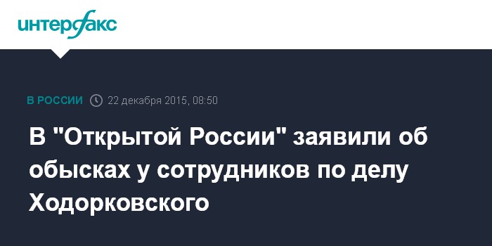 Москва. 22 декабря. INTERFAX.RU - Обыски по делу экс-главы ЮКОСа Михаила Ходорковского проходят в квартирах сотрудников созданной по его инициативе "Открытой России", сообщается на сайте организации.