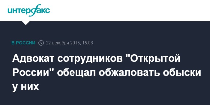 Москва. 22 декабря. INTERFAX.RU - Обыски у сотрудников "Открытой России", основанной экс-главой ЮКОСа Михаилом Ходорковским, будут обжалованы в судебном порядке, заявил "Интерфаксу" адвокат Сергей Бадамшин.