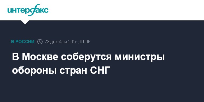 Москва. 23 декабря. INTERFAX.RU - В Москве состоится очередное 69-е заседание Совета министров обороны государств - участников Содружества Независимых Государств, сообщает Управление пресс-службы и информации Министерства обороны Российской Федерации.