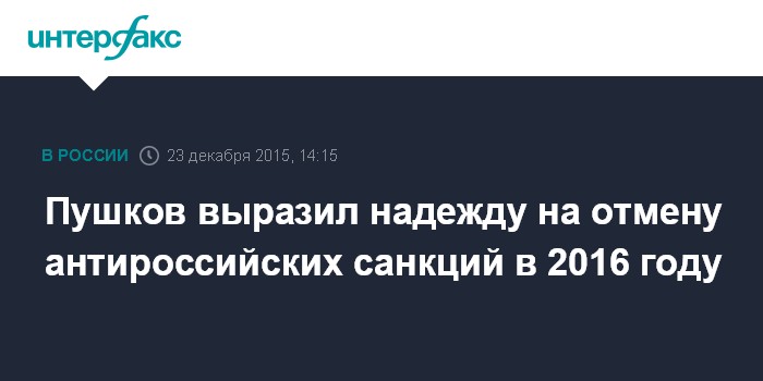Москва. 23 декабря. INTERFAX.RU - Председатель комитета Госдумы РФ по международным делам Алексей Пушков не исключает, что следующий год станет последним годом действия антироссийских санкций.