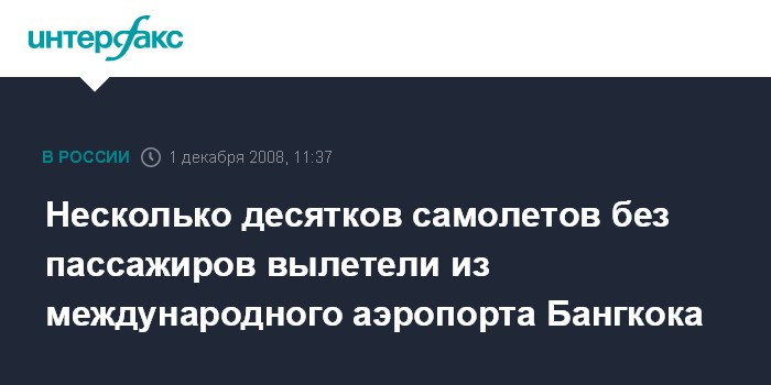 Москва. 1 декабря. INTERFAX.RU - Около 40 самолетов без пассажиров вылетели из международного аэропорта Бангкока Суварнабхуми после того, как власти подписали с занявшими аэропорт антиправительственными демонстрантами соответствующее соглашение, сообщает британская телерадиокорпорация Би-Би-Си.