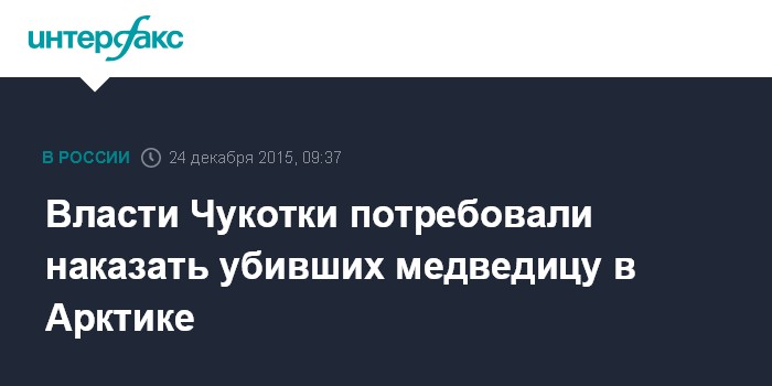 Москва. 24 декабря. INTERFAX.RU - Губернатор Чукотки Роман Копин обратился в прокуратуру, ФСБ, МВД, СК РФ с просьбой профессионального расследования преступления на острове Врангеля - жестокого убийства белой медведицы.