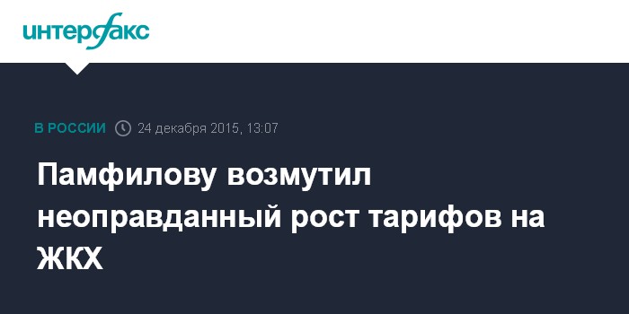 Москва. 24 декабря. INTERFAX.RU - Уполномоченный по правам человека в РФ Элла Памфилова обеспокоена неоправданным повышением тарифов на ЖКХ в России и увеличением других выплат населением.