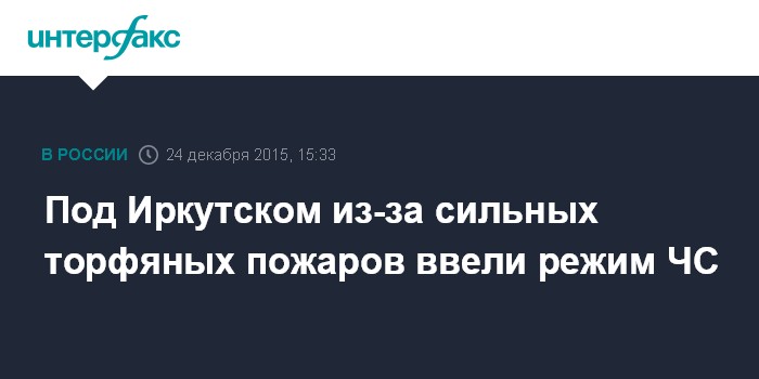 Москва. 24 декабря. INTERFAX.RU - В Усольском районе Иркутской области из-за сильных торфяных пожаров объявлен режим ЧС, сообщается на сайте местной администрации.