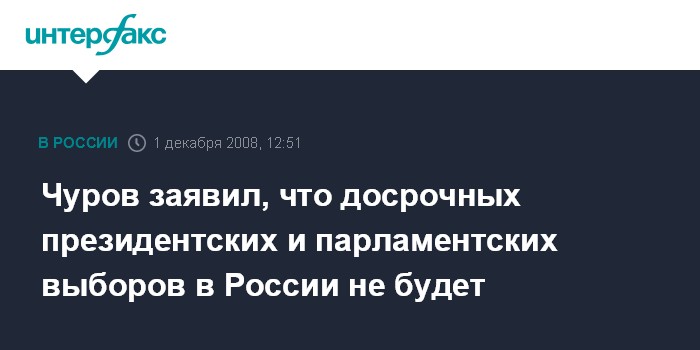 Москва. 1 декабря. INTERFAX.RU - В России не планируются досрочные президентские и парламентские выборы, сообщил глава ЦИК РФ Владимир Чуров. "Мы готовимся к плановым выборам. Кто, что, где выдумывает - мне неизвестно", - сказал он на пресс-конференции в "Интерфаксе" в понедельник.