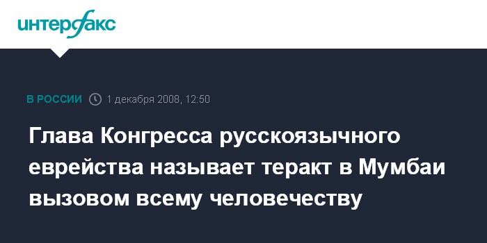 Москва. 1 декабря. INTERFAX.RU - С осуждением серии терактов в Мумбаи, в результате которых погибло около 200 и получило ранения около 600 человек, выступил президент Всемирного конгресса русскоязычного еврейства, член Совета Федерации Борис Шпигель.