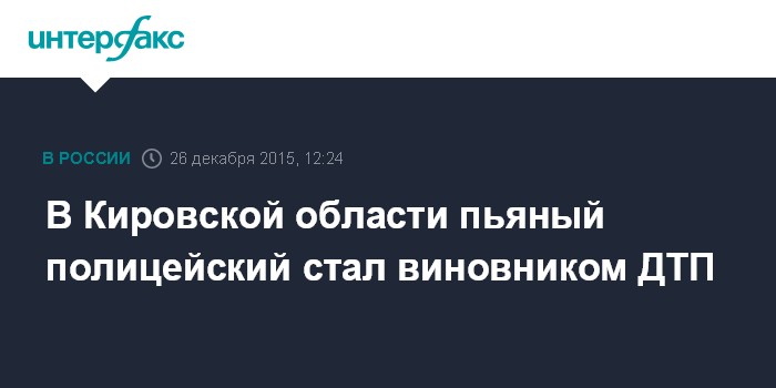 Москва. 26 декабря. INTERFAX.RU - В Кировской области проводится проверка по факту ДТП с участием пьяного полицейского, в котором один человек погиб, еще пятеро получили травмы.