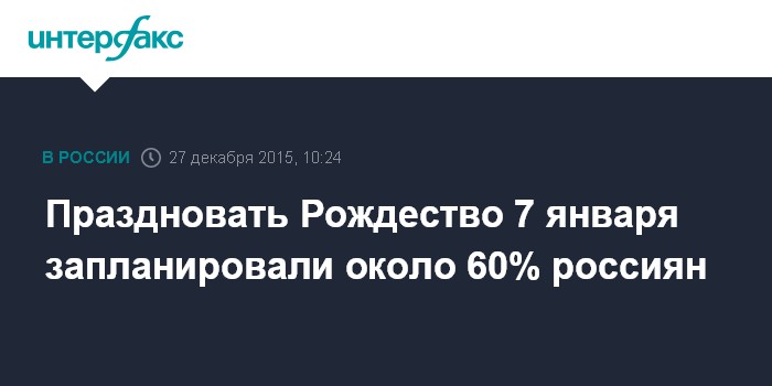 Москва. 27 декабря. INTERFAX.RU - Праздник Рождества Христова 7 января планирует отмечать 57% россиян, сообщили "Интерфаксу" в "Левада-Центре" по итогам декабрьского опроса.