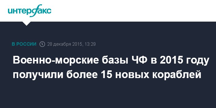 Москва. 28 декабря. INTERFAX.RU - Военно-морские базы в Севастополе и Новороссийске за год получили более 15 боевых кораблей, сообщил командующий Черноморским флотом (ЧФ) адмирал Александр Витко.