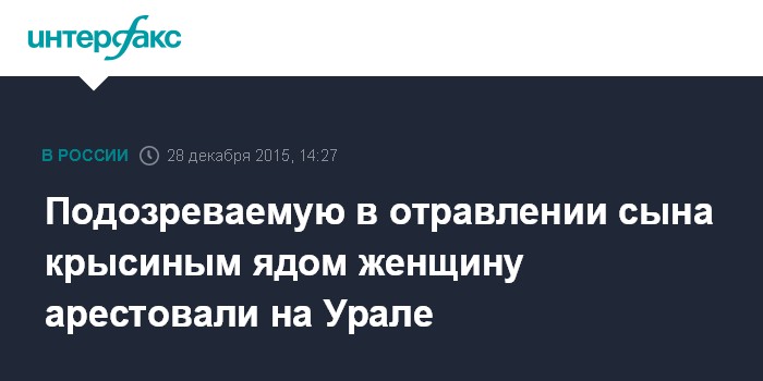Подозреваемую в отравлении сына крысиным ядом женщину арестовали на Урале