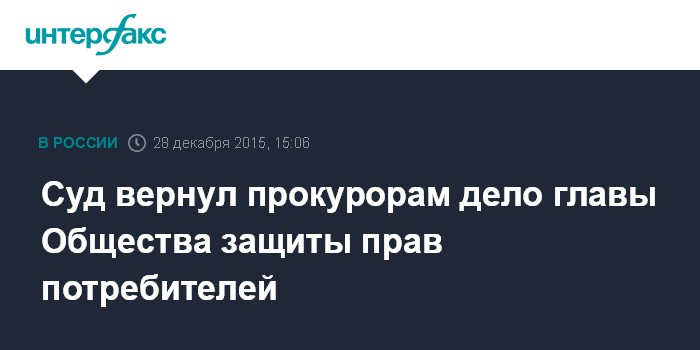Суд вернул прокурорам дело главы Общества защиты прав потребителей