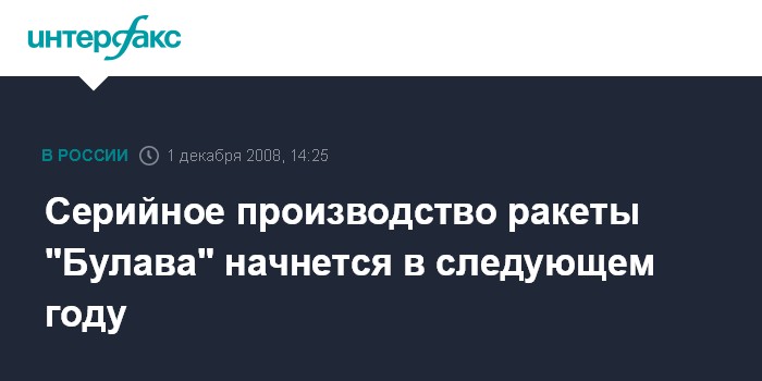 Серийное производство ракеты "Булава" начнется в следующем году