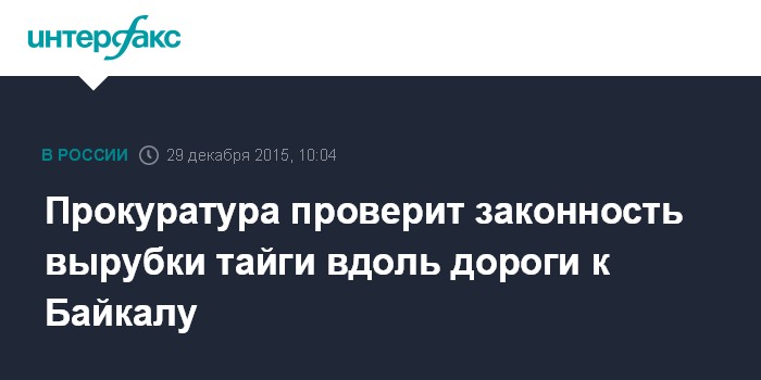 Москва. 29 декабря. INTERFAX.RU - Западно-Байкальская природоохранная прокуратура начала проверку по факту сплошной рубки деревьев вдоль автотрассы в Иркутской области, ведущей к озеру Байкал, сообщает пресс-служба прокуратуры.