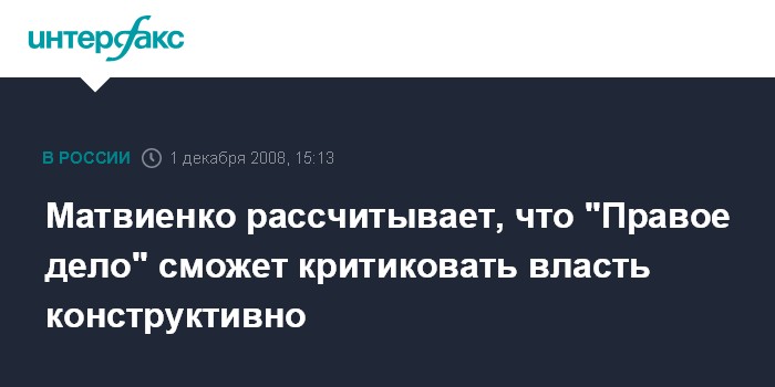 Москва. 1 декабря. INTERFAX.RU - Губернатор Петербурга Валентина Матвиенко рассчитывает, что создаваемая в стране партия "Правое дело" сможет вести с властью конструктивный диалог.