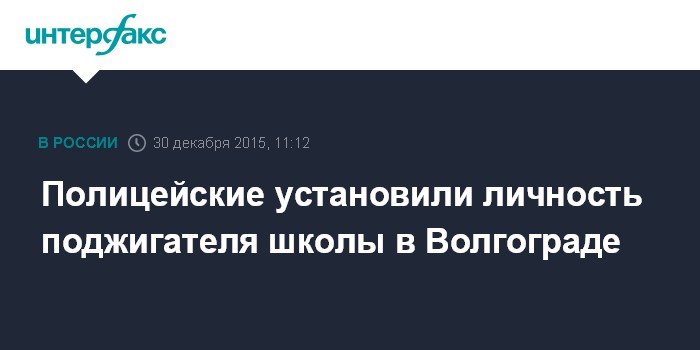 Москва. 30 декабря. INTERFAX.RU - Сотрудники полиции установили личность мужчины, который был задержан во вторник по подозрению в поджоге школы в Волгограде, сообщила в среду "Интерфаксу" руководитель пресс-службы ГУ МВД по региону Светлана Смольянинова.