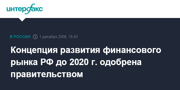 Концепция развития финансового рынка РФ до 2020 г. одобрена правительством