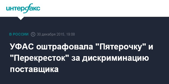 Москва. 30 декабря. INTERFAX.RU - Управление Федеральной антимонопольной службы (ФАС) по Московской области признало ООО "Агроаспект" (оператор сети магазинов "Пятерочка") и ЗАО "ТД "Перекресток" (сеть "Перекресток", обе принадлежат X5 Retail Group) нарушившими закон о торговле.