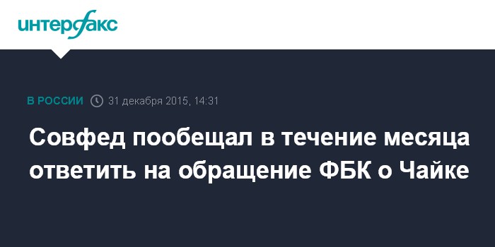 Москва. 31 декабря. INTERFAX.RU - Обращение Фонда борьбы с коррупцией (ФБК) с призывом инициировать парламентское расследование по материалам фильма Фонда борьбы с коррупцией о членах семьи генпрокурора РФ Юрии Чайки поступило в комитет Совета Федерации по конституционному законодательству и госстроительству и будет рассмотрено в течение 30 дней.