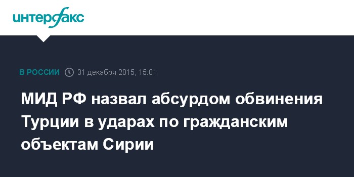 Москва. 31 декабря. INTERFAX.RU - В Москве сочли абсурдными обвинения Анкары в том, что российские самолеты наносят удары по гражданским объектам и мирным жителям в Сирии.