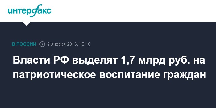 Власти РФ выделят 1,7 млрд руб. на патриотическое воспитание граждан