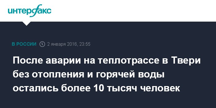 По информации ООО "Тверская генерация", сотрудники которой устраняют аварию, наполнение магистрального трубопровода с последующим подключением потребителей начнется после 2 часов ночи 3 января.