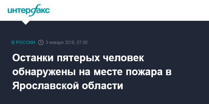 Москва. 3 января. INTERFAX.RU - Не менее пяти человек погибли в результате пожара в поселке Песочное Рыбинского района Ярославской области, сообщил "Интерфаксу" источник в следственных органах.
