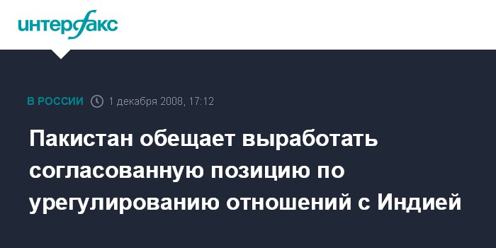 Пакистан обещает выработать согласованную позицию по урегулированию отношений с Индией