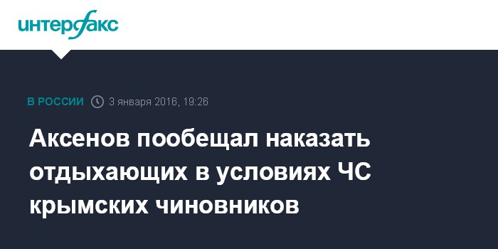 Москва. 3 января. INTERFAX.RU - Глава Крыма Сергей Аксенов обещает наказать чиновников, которые уехали на новогодние праздники из энергодефицитного региона и не отвечают на звонки.